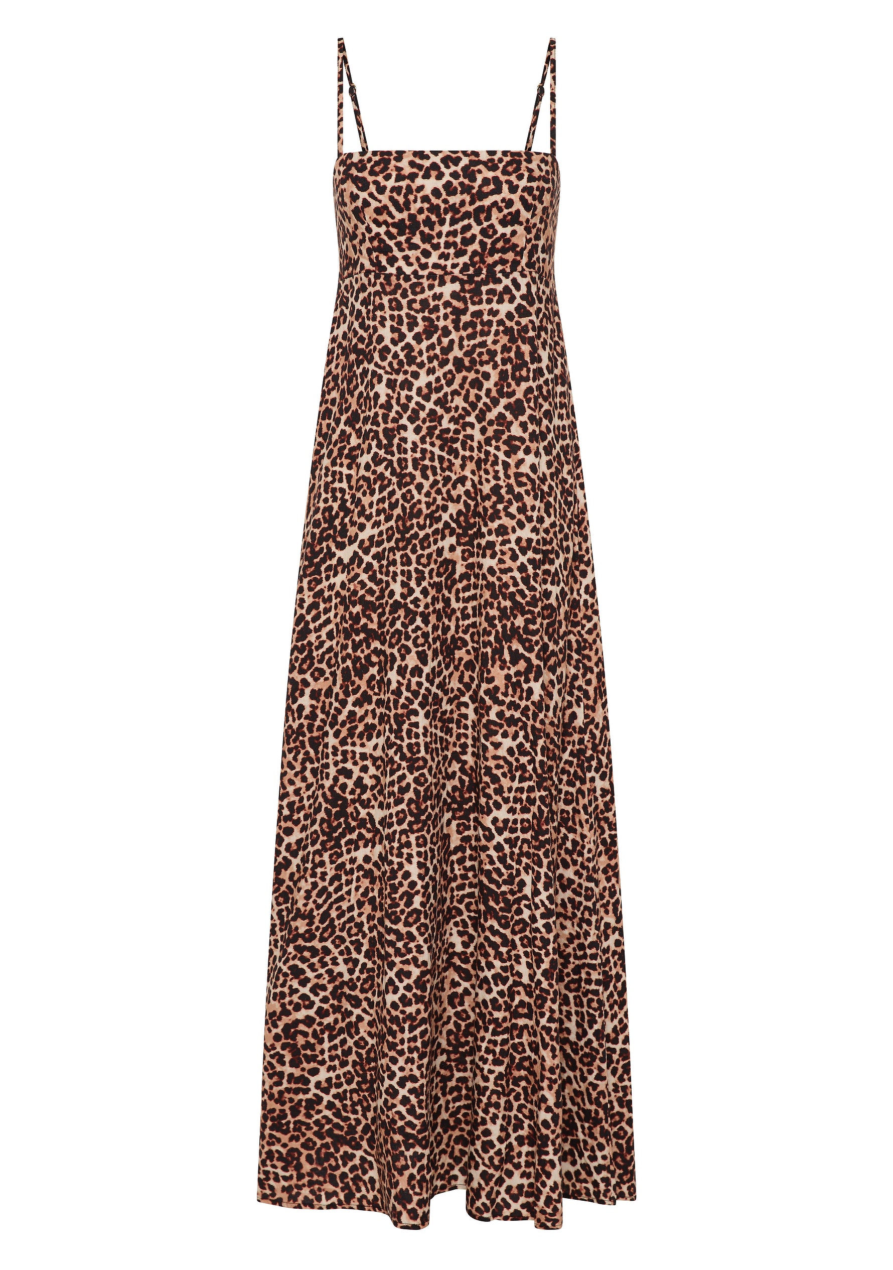 The Ilse Maxi Dress in our striking Canyon Leopard print is a bold new silhouette with a straight neckline, empire waist, and an elegant A-line maxi shape. Crafted from a dry linen-rayon blend with a flattering drape, it’s a true summer stand-out.