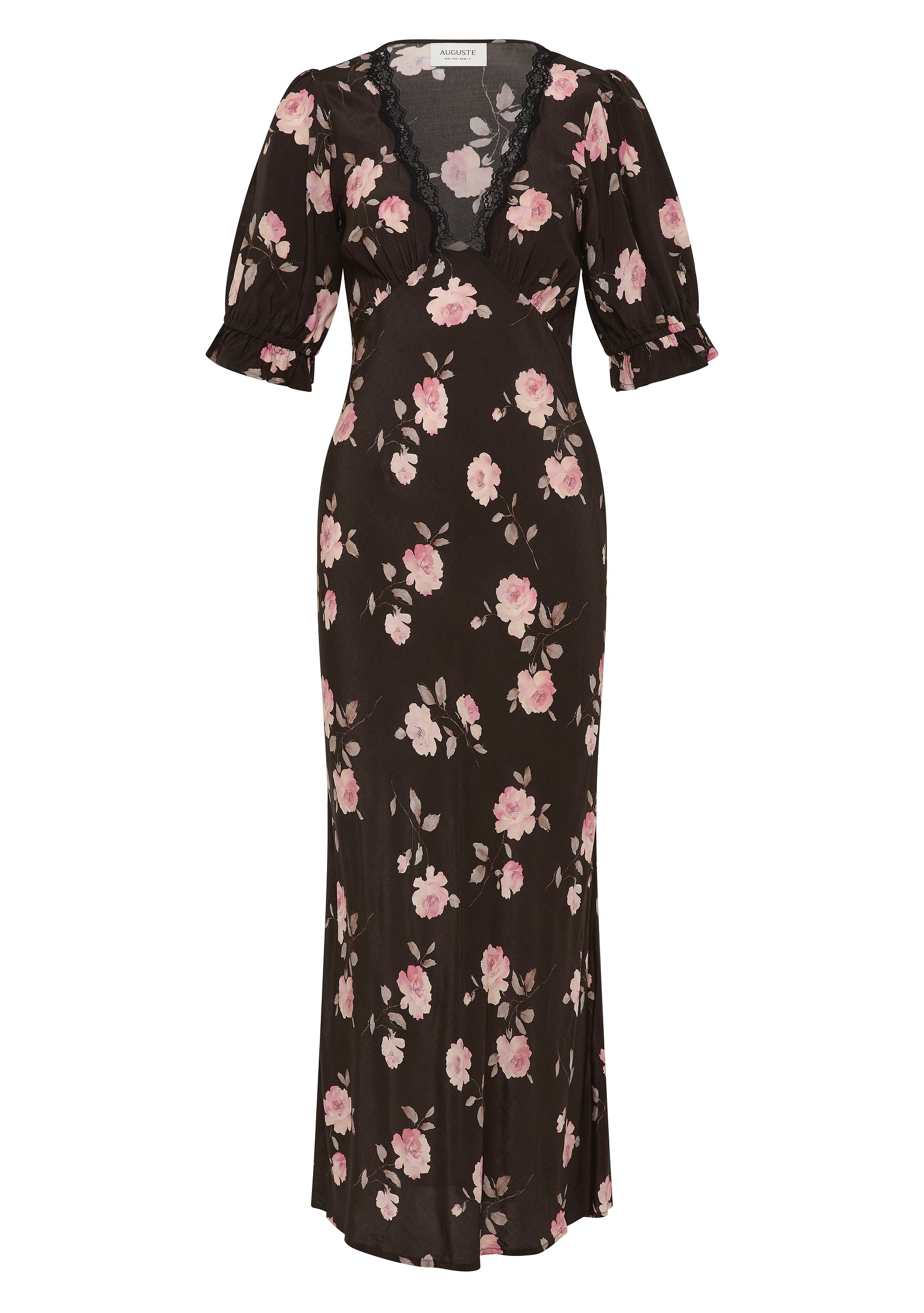 The Myles Midi Dress in our charcoal Nova Rose print oozes femininity with a touch of ’90s nostalgia. Featuring a V neckline trimmed with delicate lace and bust panels lined for extra support, it skims the body in a flattering bias-cut silhouette—an undeniable head-turner that will have you feeling like a million bucks. Cue the compliments.