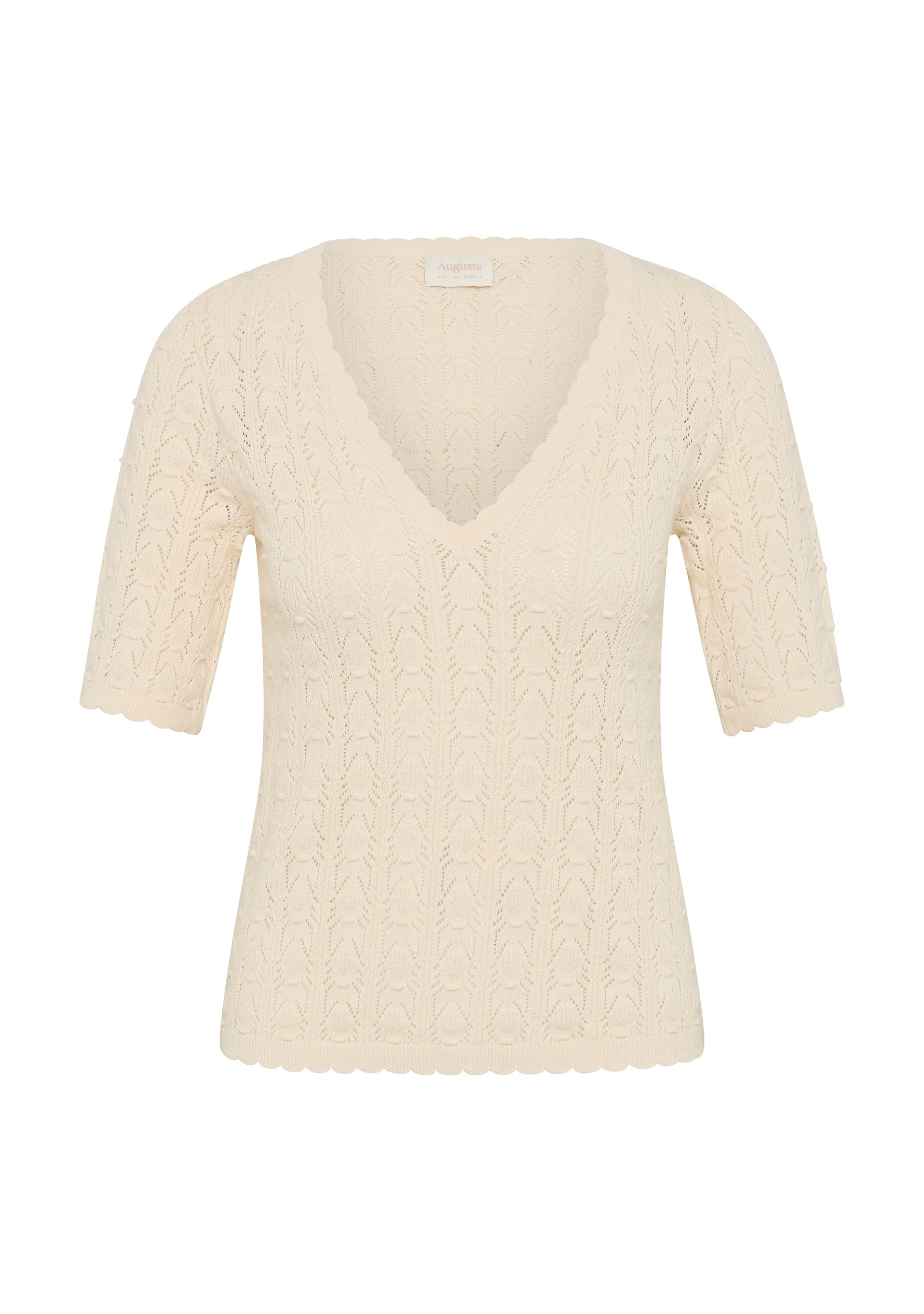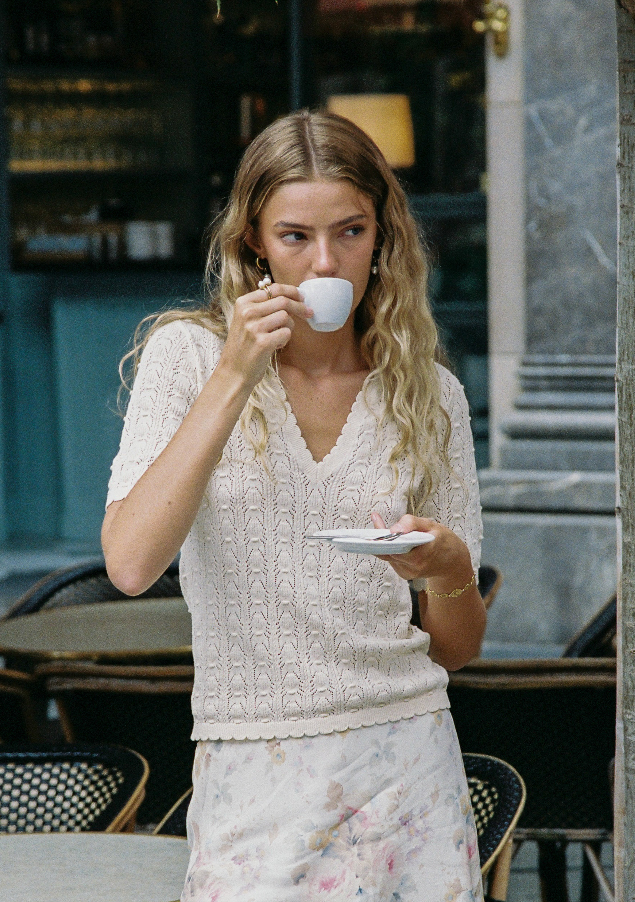 The Jude Knit Tee in fresh cream is an update to a best-loved style. Featuring a flattering V neckline with scallop trim and a fitted shape Crafted from breathable cotton in a mid-weight open knit, it’s an effortless piece to wear on repeat.