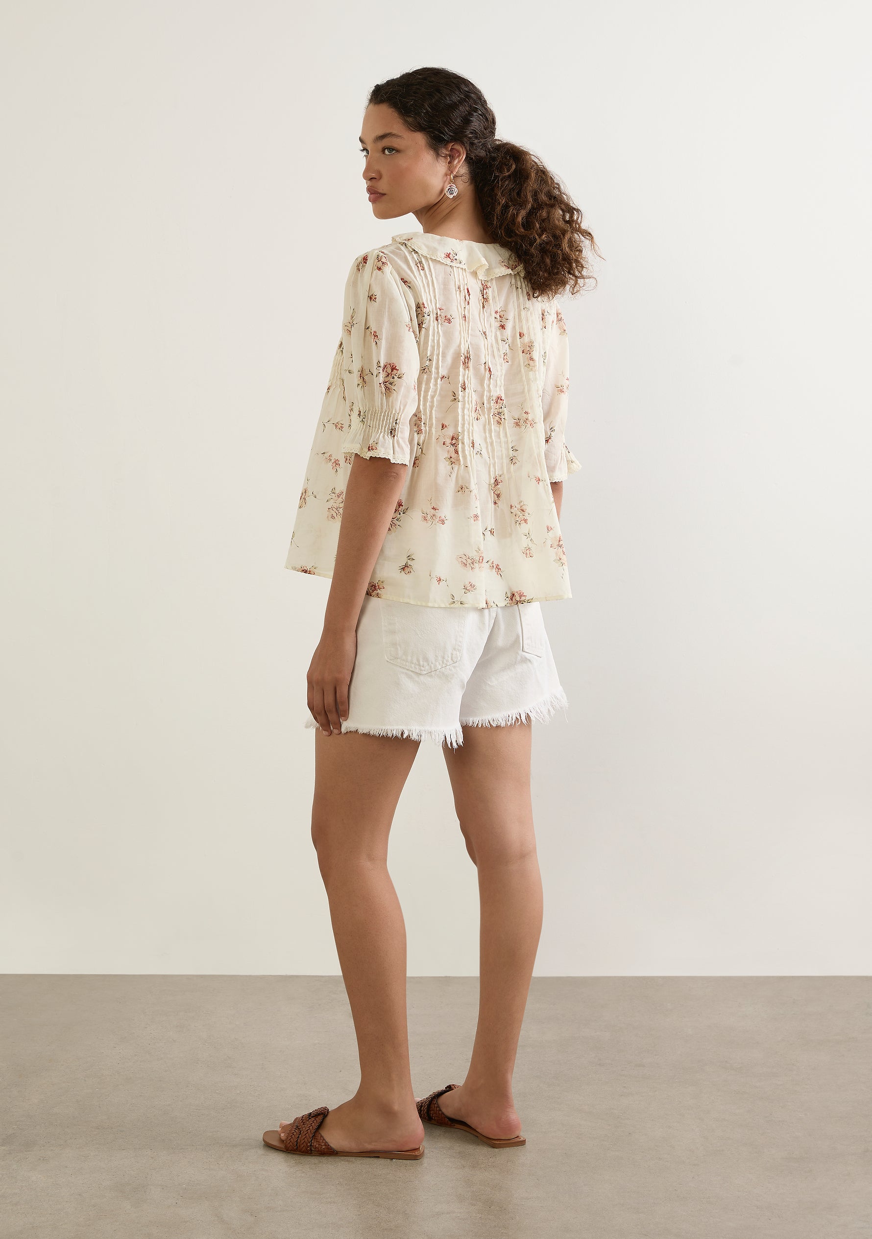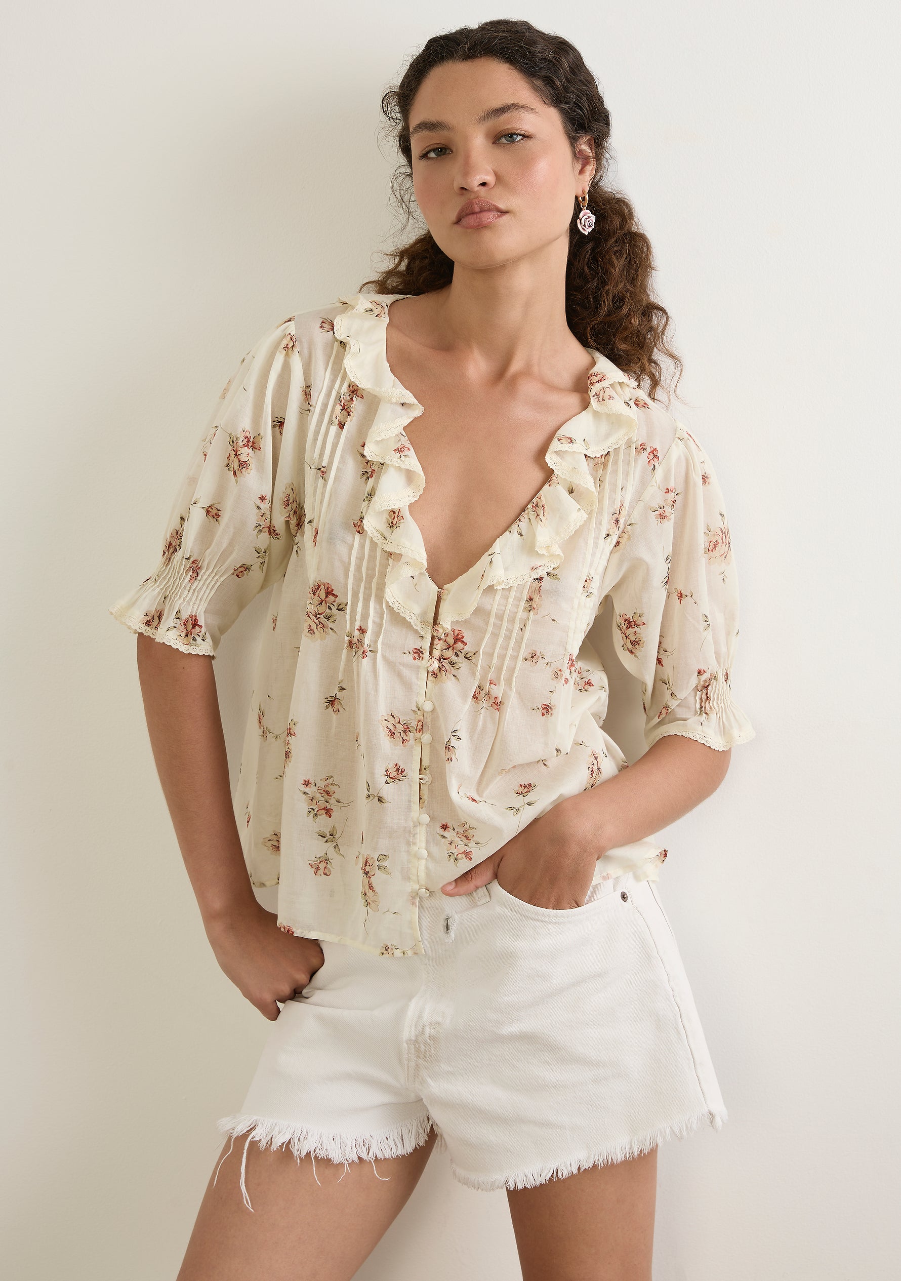 The Rafael Blouse in our vintage-inspired Isla print is your denim’s new best friend. Crafted from soft organic cotton, no detail has been spared—a ruffled collar, delicate trim, and pin-tuck accents—coming together in a loose, flattering silhouette that feels timeless and feminine.