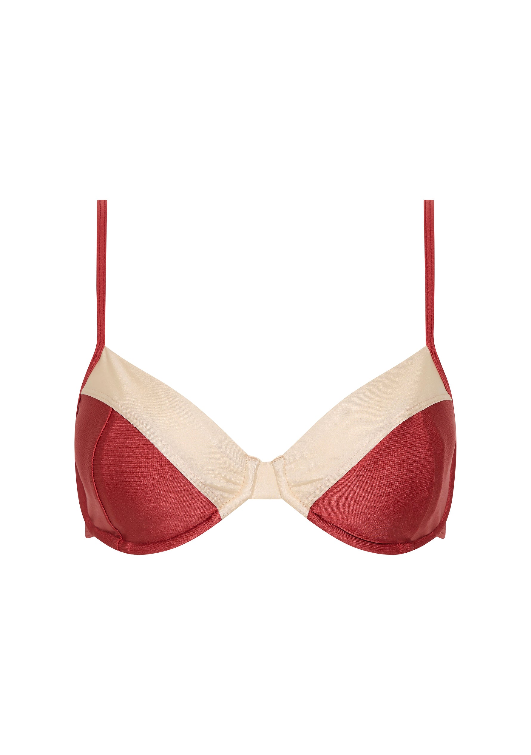 The Sculpt Bikini Top in watermelon and off-white is our best-selling style, reimagined in a striking new contrast. With underwire support for a flattering fit, this timeless bikini is crafted from sustainable recycled nylon — a summer essential you can feel extra good about. Pairs perfectly with the Maddox High-Waisted Bottom.